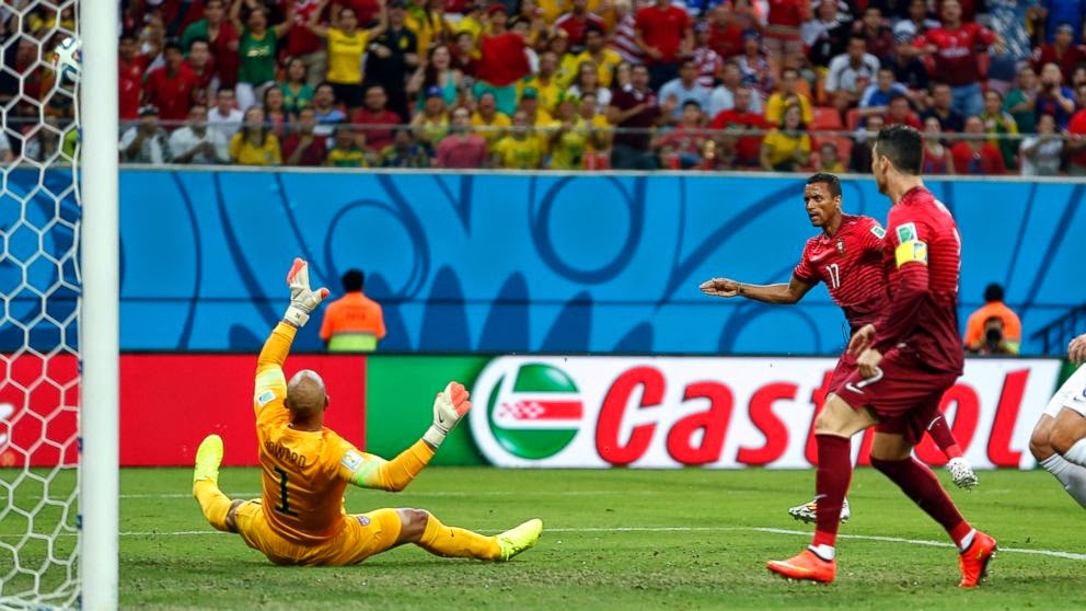 A selecção até entrou bem, com o golo de Nani, mas cedo se percebeu que a defesa ia passar por dificuldades. Com um meio campo nacional lento e pouco pressionante, os EUA foram aproveitando para construir ataques perigosos. Bradley, Zusi e Dempsey tiveram remates perigosos, mas foi novamente Nani a ficar perto do golo (remate ao poste, com a recarga de Éder a obrigar Howard a excelente defesa). No segundo tempo, já com William Carvalho em campo, Portugal estava a conseguir aguentar o meio campo, mas não as investidas pelo flanco direito dos EUA (Ricardo Costa salvou um golo em cima da linha). Num desses lances, os norte-americanos ganharam pontapé de canto e, na sequência, Jones rematou de meia distância para o 1-1. Pouco tempo depois, Meireles ficou perto do 1-2, mas viu Howard defender o seu remate. Portugal procurava o golo, no entanto, sem grande critério e sobressaltos para a defensiva norte-americana. Pelo contrário, foram mesmo os EUA a chegar ao 2-1. Jogada de insistência na área portuguesa e um desvio de Dempsey, com a barriga, para o fundo das redes de Portugal. O golo qualifica os EUA, mas Varela serviu um prato frio aos norte-americanos. Perda de bola do meio campo dos EUA, Ronaldo cruza com precisão e Varela cabeceia para o 2-2 final.EUA - Uma selecção com a lição bem estudada e com uma capacidade física bem superior a Portugal. O golo sofrido (grave erro de Cameron), obrigou os norte-americanos a ir para a frente, mostrando qualidade na circulação de bola e facilidade em chegar às áreas de finalização. Clint Dempsey, apesar de ser algo lento, foi rápido o suficiente para superar os centrais portugueses por diversas vezes; Zusi, aposta de Klinsmann para este jogo, entrou com intensidade e criou bastantes desequilíbrios quando jogou sobre a direita;Michael Bradley e Jones foram incansáveis no meio campo e apareceram bem em zonas de finalização (Jones marcou um golaço), enquanto Howard esteve seguro na baliza eJohnson explorou bem as debilidades do lado esquerdo da defesa portuguesa.