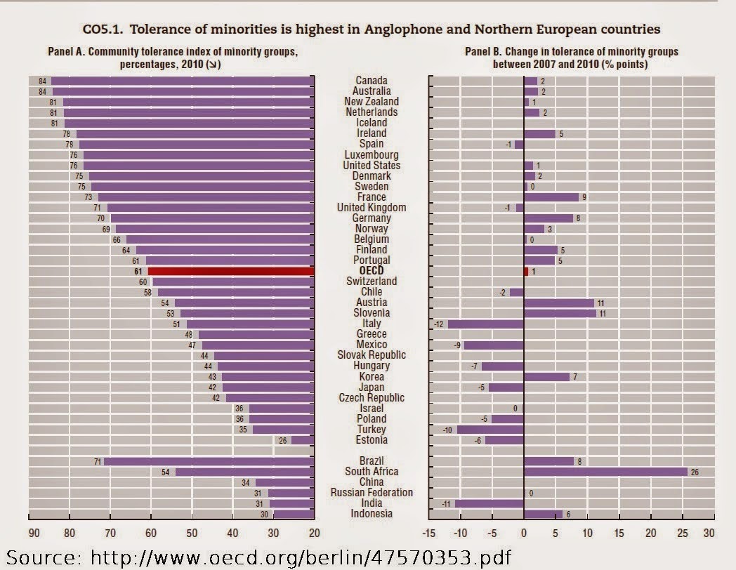 Quanto ao nosso Portugal, a tolerância em relação às minorias tem crescido acima da média da OCDE. Mesmo em tempos de crise, a lavagem cerebral funciona...