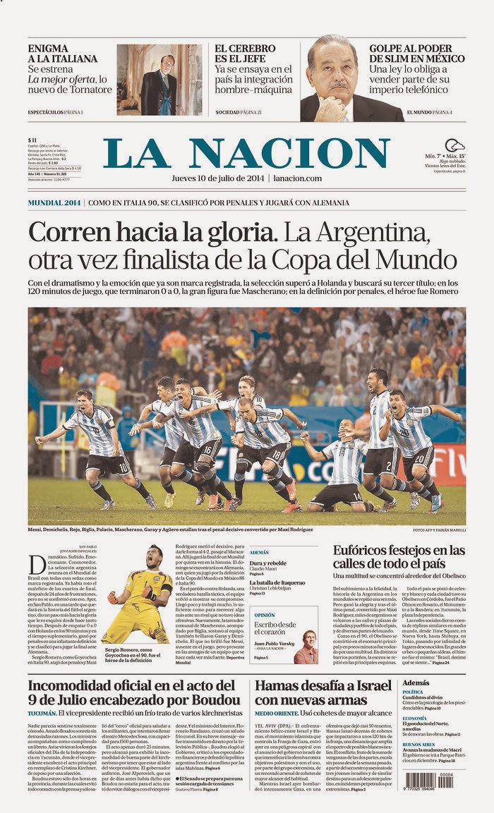 "Portugueses" - Marcos Rojo (Sporting) e Enzo Pérez (Benfica) foram titulares na final do Maracanã, colocando pela 1ª vez o nome de clubes portugueses nesta fase da prova. O lateral-esquerdo esteve em bom nível na defesa e ainda assistiu Palacio para um falhanço incrível do argentino, enquanto Enzo, mais discreto que na meia final, contribuiu para a boa primeira parte da Albiceleste.